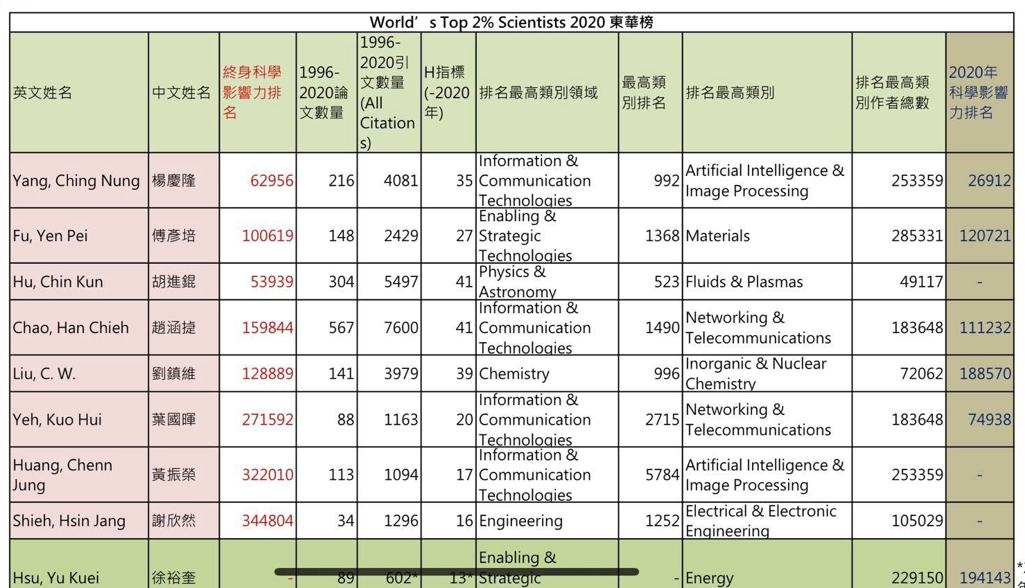 This recognition of Prof. 楊慶隆 CHING-NUNG YANG and Prof. 黃振榮 CHENN-JUNG HUANG of Department of Computer Science and Information Engineering in the World’s top 2% of Scientists List has placed the University in the global map of excellence in Computer Science researches and has brought great pride to the institute!