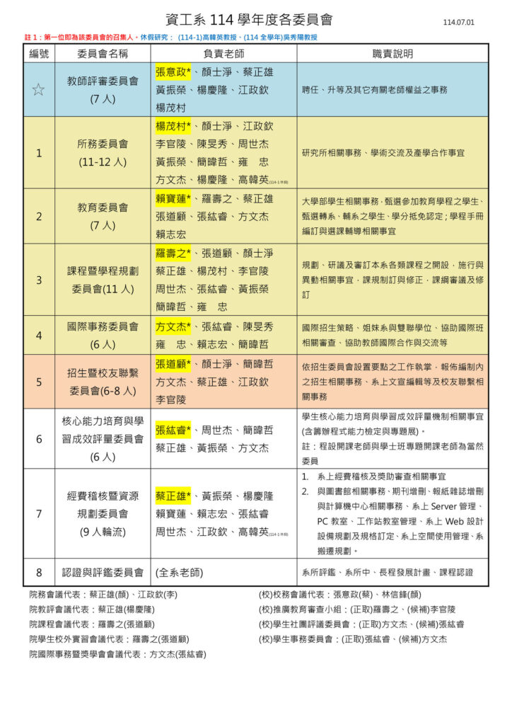 Note: The professor’s name listed on the first is the chairman of that committee.